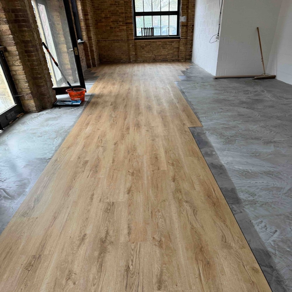 Our experienced fitters then laid each plank with meticulous attention to detail, ensuring tight joints and proper staggering of the pattern. The flat lay method allows for seamless integration across the entire floor area, creating a cohesive appearance that enhances the overall aesthetic of the commercial space.