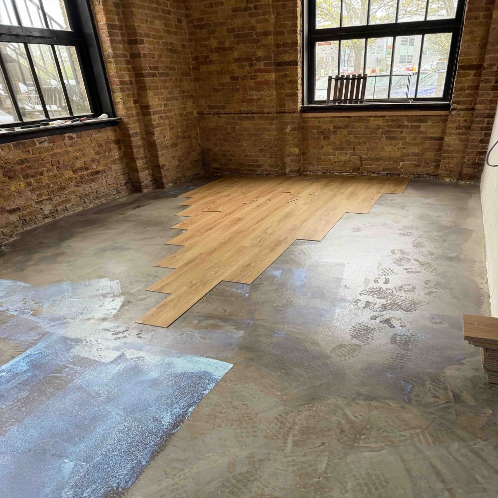 The LVT planks were delivered to site and left to acclimatise for the recommended period. This allows the material to adjust to the temperature and humidity conditions of the space, minimising any expansion or contraction issues after installation.