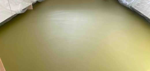 Here’s what we did. Cut and fit plyboard to subfloor Apply primer to subfloor areas Lounge/kitchen/dining area Apply screed to lounge/kitchen/dining area and allow to dry Apply feather finish and sand to create smooth, flat surface Template where required, cut and fit Marmoleum flooring to subfloor adhere with adhesive Clean and clear site upon completion It does look rather good now and it may indeed have the wow factor once it’s all finished.